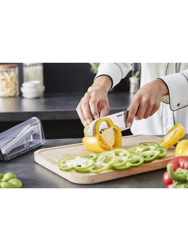 Универсальный нож сантоку Tefal Ever Sharp K2579024 16,5 см идеально подойдет для любого типа измельчения и при этом он всегда будет оставаться острым.