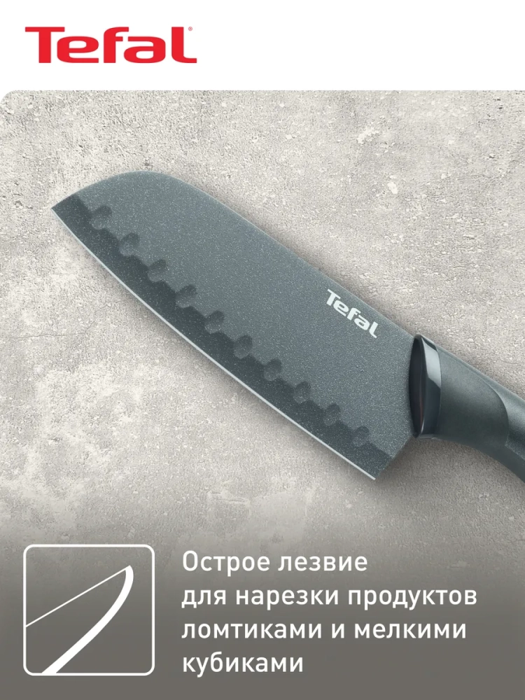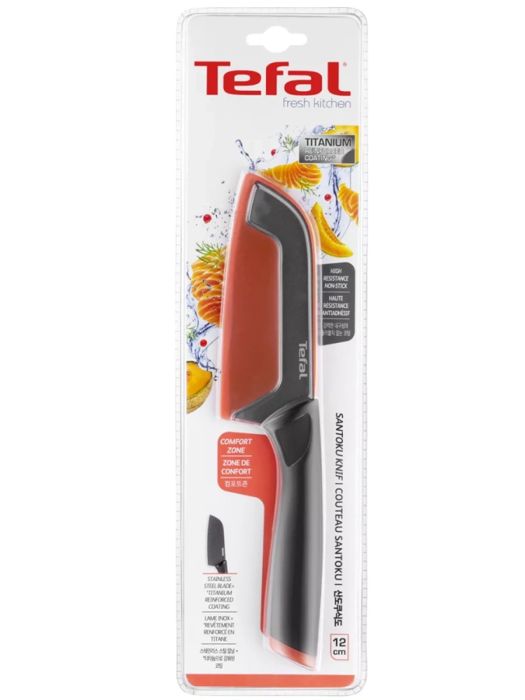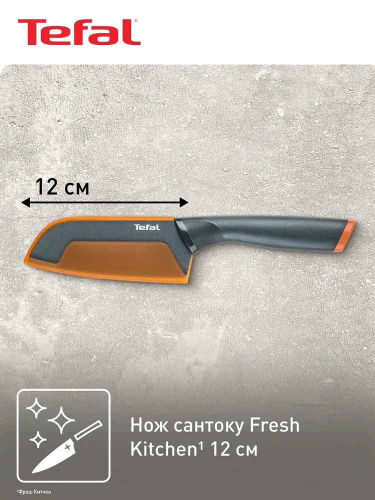 Нож сантоку Tefal Fresh Kitchen K1220104. Серия кухонных ножей Fresh: удобная ручка, идеально острое лезвие и высококачественные материалы. Серия кухонных ножей Fresh отлично подойдет для любых задач на кухне и справится с измельчением любых ингредиентов.