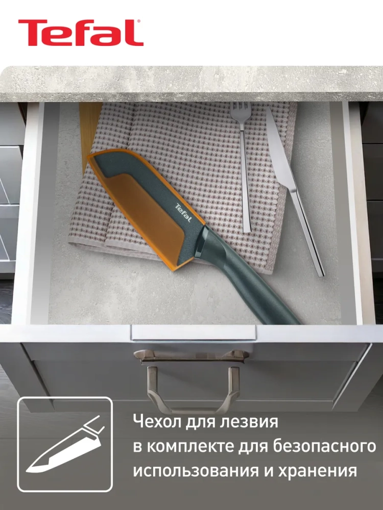 Каждый нож имеет специальный цветной полупрозрачный чехол, который защищает лезвие во время хранения. Благодаря защитному покрытию ножи можно мыть в посудомоечной машине.