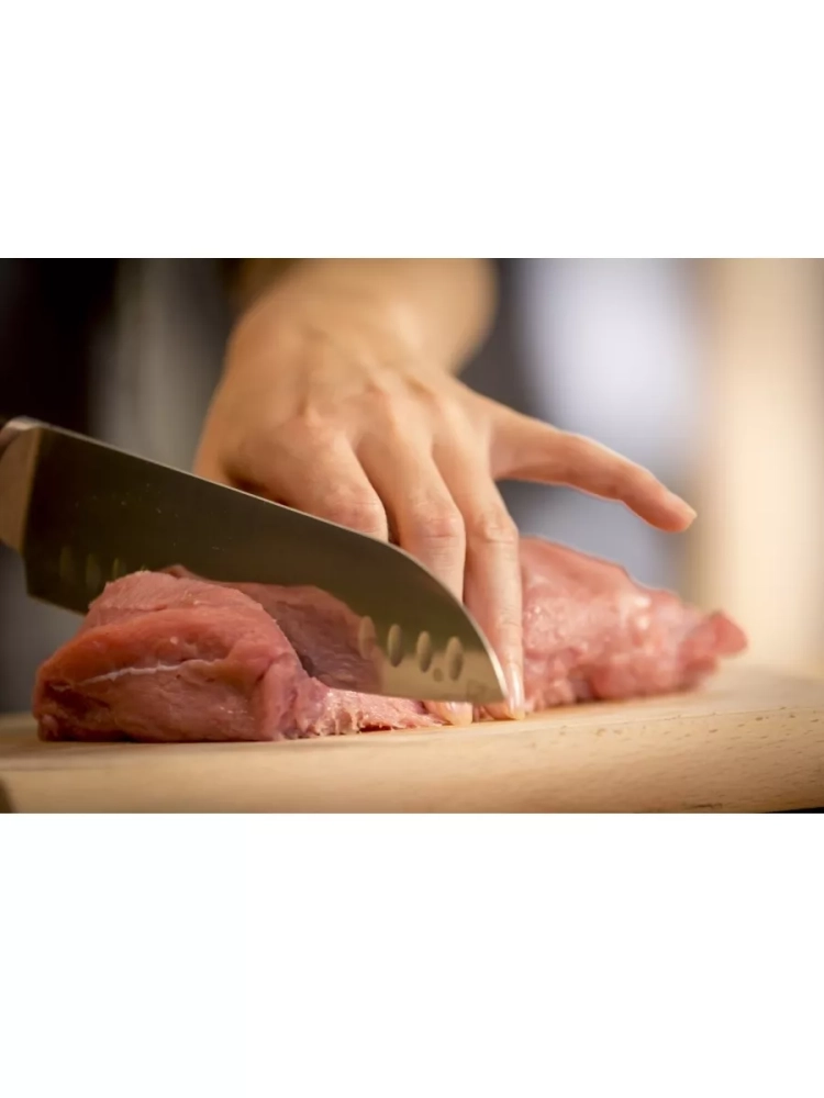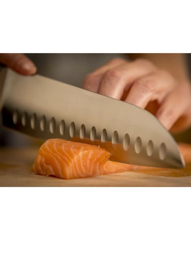 Нож-сантоку превосходно подойдет для разделки рыбы. Немецкая нержавеющая сталь - долгая служба, повышенная устойчивость к образованию коррозии и надежность. Технология Ice Force: лезвие ножа подвергается резкому охлаждению до температуры -120 градусов сразу после нагревания, что позволяет сделать его прочным, надежным и устойчивым к образованию коррозии.