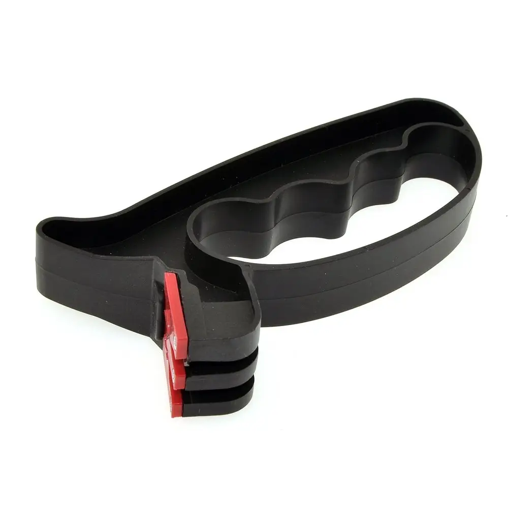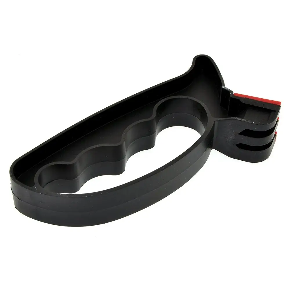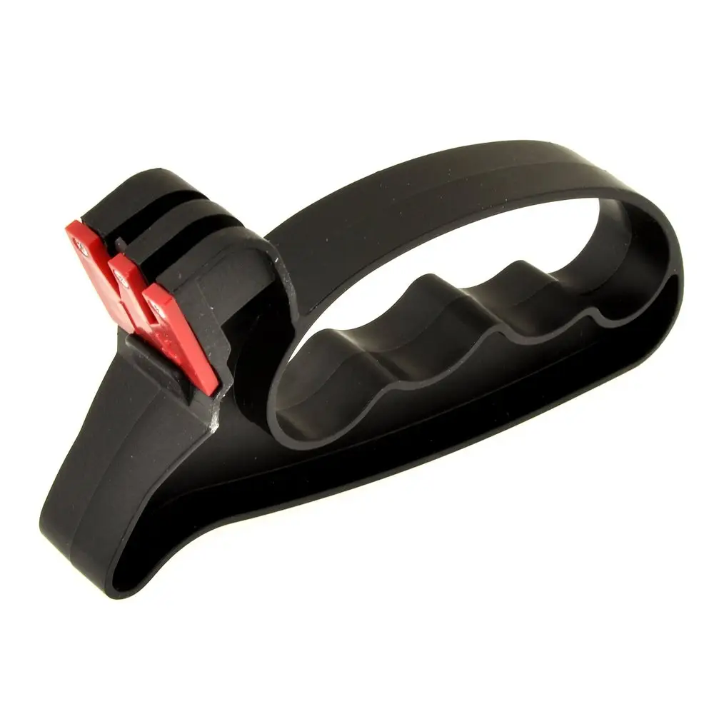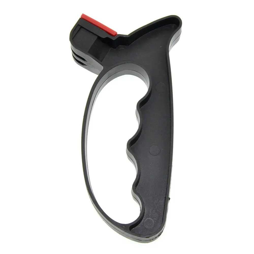 Для поддержания ножей в рабочем состоянии используйте ножеточку, предназначенную для домашнего использования. Преимущество этой модели в том, что корпус выполнен в виде ручки, обеспечивающей дополнительное удобство применения. Заточенные ножи обеспечивают удобство и безопасность применения. Ножеточка имеет две насечки — одну для ножей, вторую для ножниц. Зафиксируйте режущей кромкой вверх и проведите несколько раз ножеточкой по лезвию. Надавливайте равномерно, слишком сильное надавливание может повредить лезвие. Рабочая часть изготовлена из металлокерамики (карбида вольфрама), корпус из пластмассы (полипропилена).