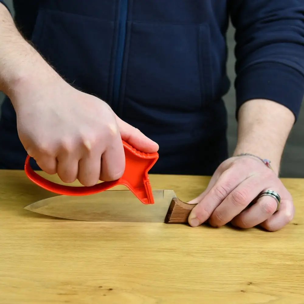 Чтобы ножи были острыми и безопасными во время нарезки продуктов, требуется их регулярно затачивать. Универсальная ножеточка «Искорка» позволит быстро подготовить инструмент к работе. Удобная ручка защитит пальцы рук от повреждений, а две насечки позволят качественно заточить лезвия ножниц и ножей. Проводите заточку по направлению от ручки, повторите движения несколько раз. Изделие займет достойное место в домашнем хозяйстве, занимает мало места, не нуждается в особом уходе. Рабочая часть изготовлена из металлокерамики (карбида вольфрама), корпус из пластмассы (полипропилен).