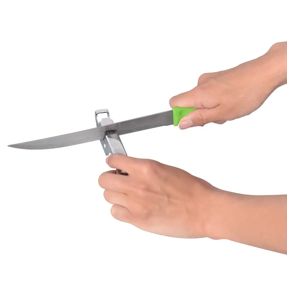 Многофункциональная ножеточка используется для заточки ножей и ножниц с помощью дисков, обеспечивающих безопасность, а также для открывания банок и бутылок. Благодаря своей простоте и надежности, данное изделие позволит быстро подготовить инструмент к работе. ВНИМАНИЕ! Слишком сильное надавливание при заточке может повредить инструмент!