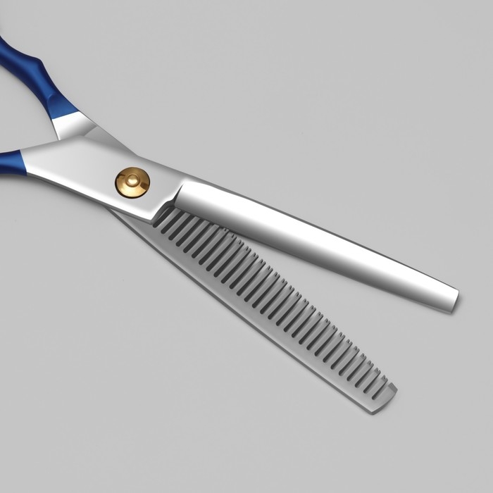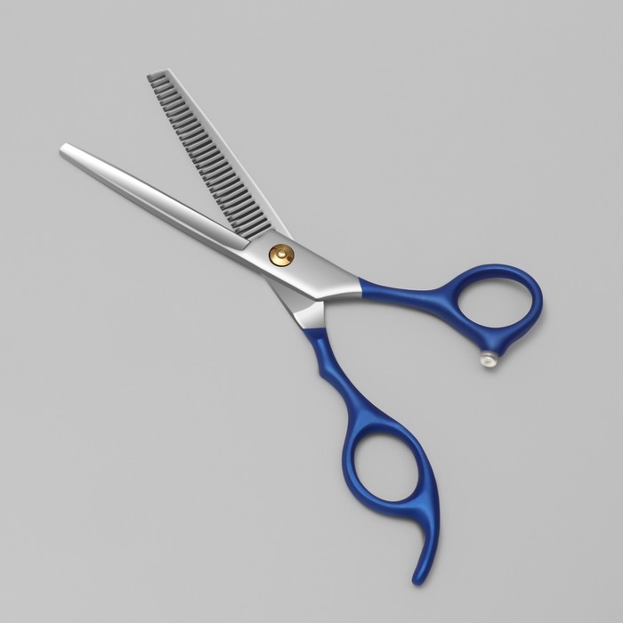 Ножницы филировочные с упором «Premium», лезвие — 6,5 см, цвет серебристый/синий