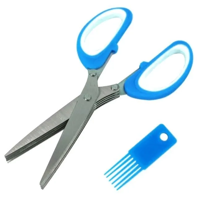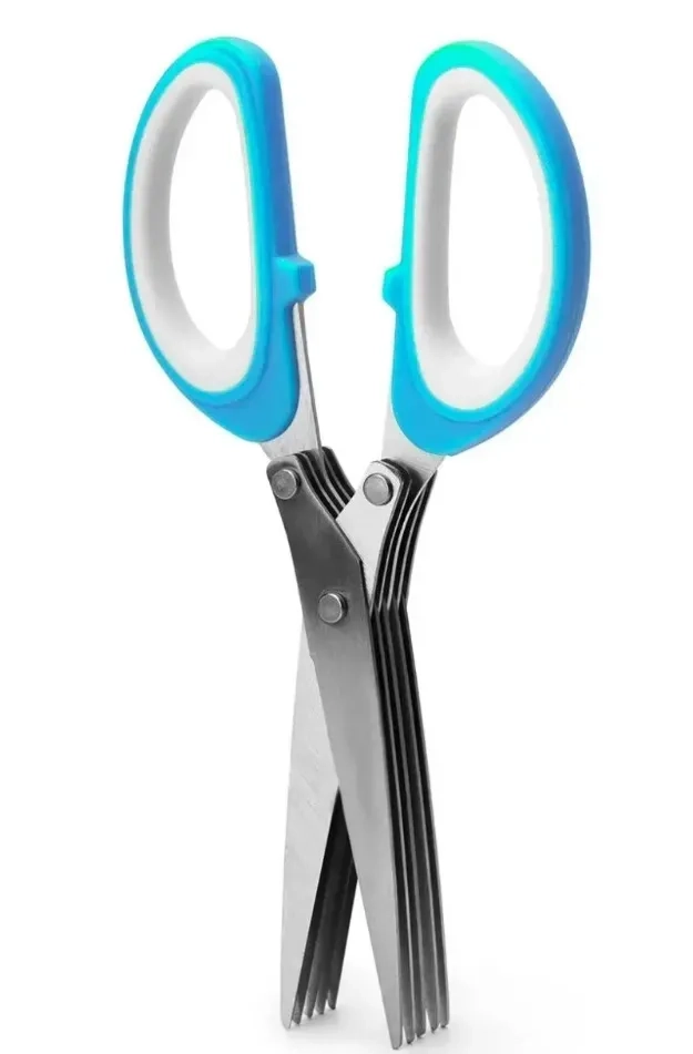 Ножницы для нарезки зелени – очень удобный и практичный инструмент для измельчения зелени, лука, сухофруктов и всего чего только захотите. Ножницы имеют 5 лезвий из высококачественной стали, что значительно ускоряет процесс нарезки трав и при этом больше не нужно использовать разделочную доску. Зелень или сухофрукты, нарезанные ножницами для кухни, получаются одинакового размера и делает блюдо более аппетитным и привлекательным. Кухонные ножницы с удобными эргономичными ручками, которые имеют резиновое покрытие не впиваются в руки. Специальная щеточка в комплекте облегчает очищение лезвий. Ножницы для зелени с надежными креплениями, простые и безопасные!