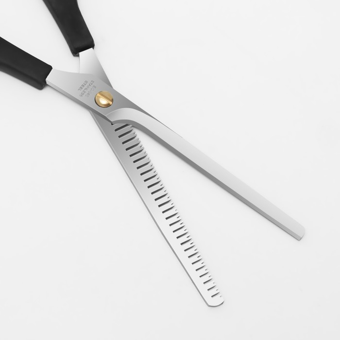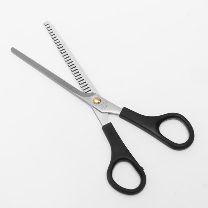 Ножницы парикмахерские, филировочные, с упором, лезвие — 7,5 см, в блистере, цвет чёрный, ЕC-040