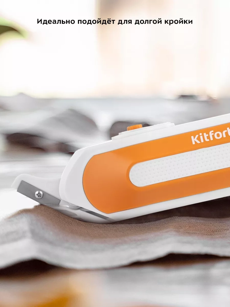 Электрические ножницы Kitfort КТ-6045 помогут разрезать ткань, бумагу, картон.