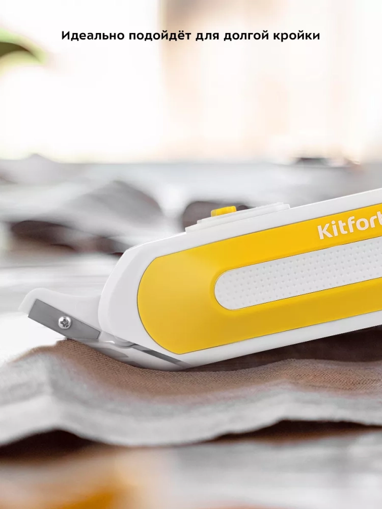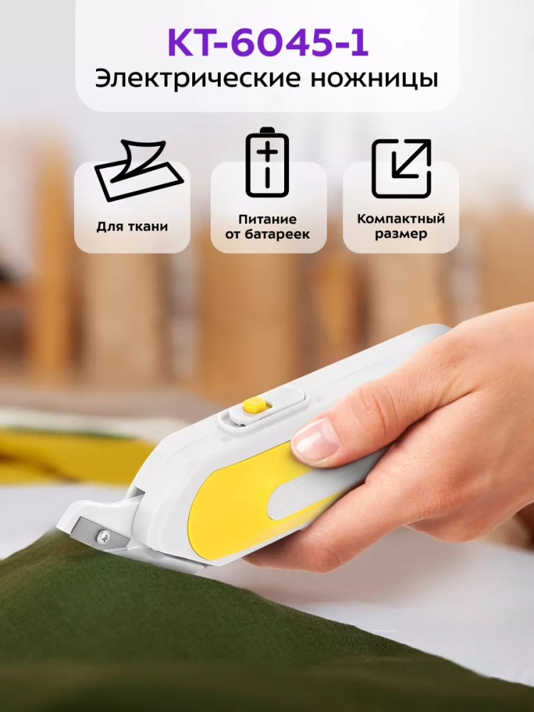 Электрические ножницы Kitfort КТ-6045 помогут разрезать ткань, бумагу, картон.