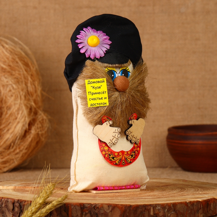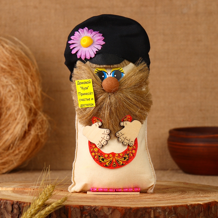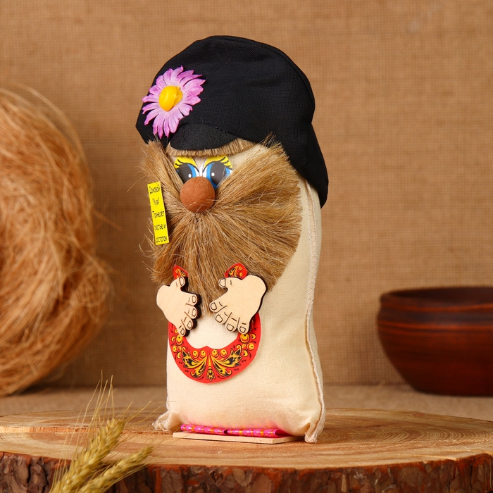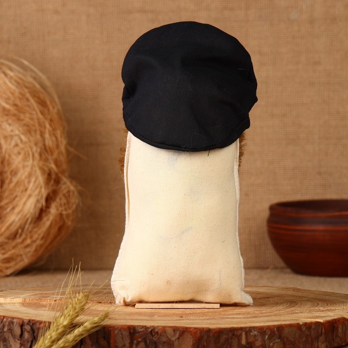 Оберег "Домовой в кепке с подковой", лён, 20 см