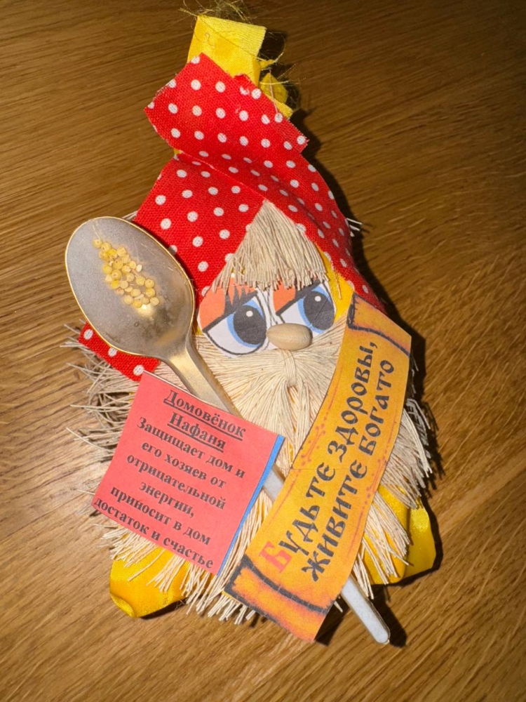 Погрузитесь в атмосферу тепла и уюта с уникальным оберегом для дома — маленьким домовенком Нафаней высотой 15 см. Эта кукла-оберег станет не только стильным дополнением вашего интерьера, но и мощным защитником вашего дома от негативных энергий. Изготовленная вручную с любовью и вниманием к деталям, она наполняет пространство гармонией и помогает сохранить теплые отношения между всеми членами семьи. Каждый домовенок выполнен из натуральных материалов, что обеспечивает его долговечность и экологичность. Прекрасный подарок для родных и близких, этот оберег станет символом заботы и любви, напоминая о ценности домашнего очага. Создайте уютное пространство, наполненное магией и позитивной энергией, с маленьким домовенком Нафаней — вашим личным талисманом для счастья и благополучия!