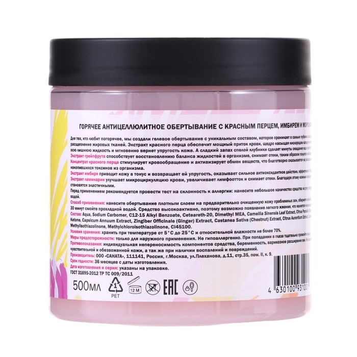 Обёртывание горячее антицеллюлитное с красныи перцем, имбирём и морскими водорослями 500 мл