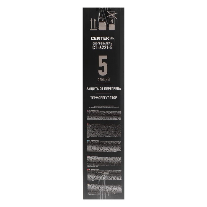 Обогреватель Centek CT-6221-5, масляный, напольный, 1000 Вт, 12.5 м², 5 секций, бело-чёрный