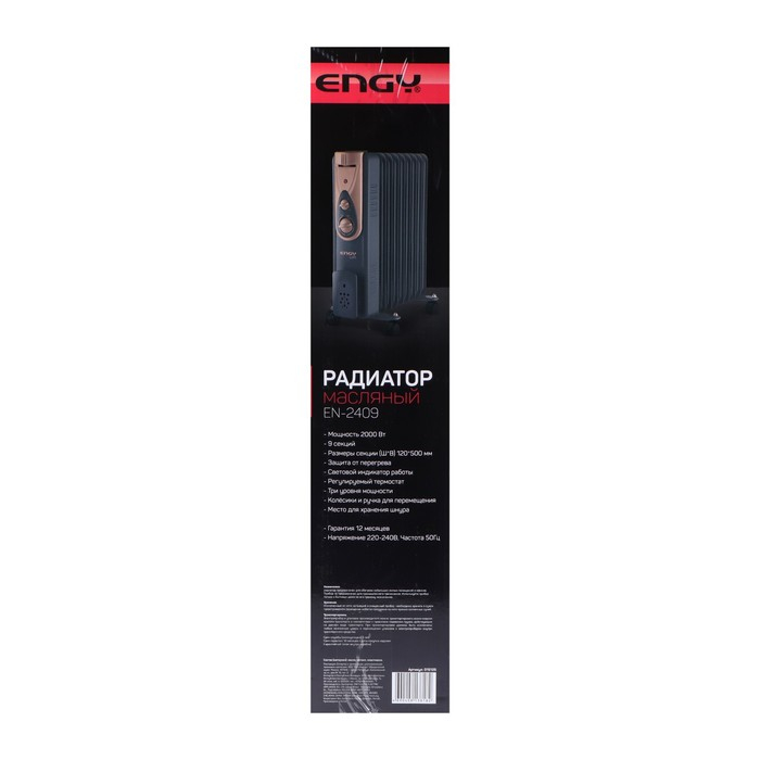Обогреватель ENGY EN-2409 Loft, масляный, напольный, 2000 Вт, 20 м², черный