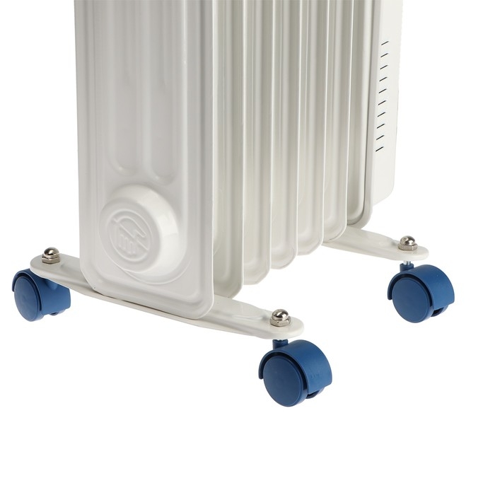 Масляный обогреватель - отопительный прибор с мощностью 1500 Вт. Устройство имеет термостат для поддержания заданной температуры. Прибор удобно перемещать по комнате за счет колесиков.