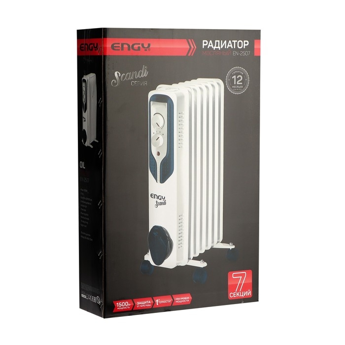 Обогреватель ENGY EN-2507, маслянный, 1500 Вт, 20 м², 7 секций, белый