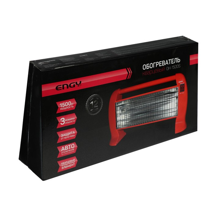 Обогреватель ENGY QH-1500S, кварцевый инфракрасный, 3 уровня нагрева, 1500 Вт, красный