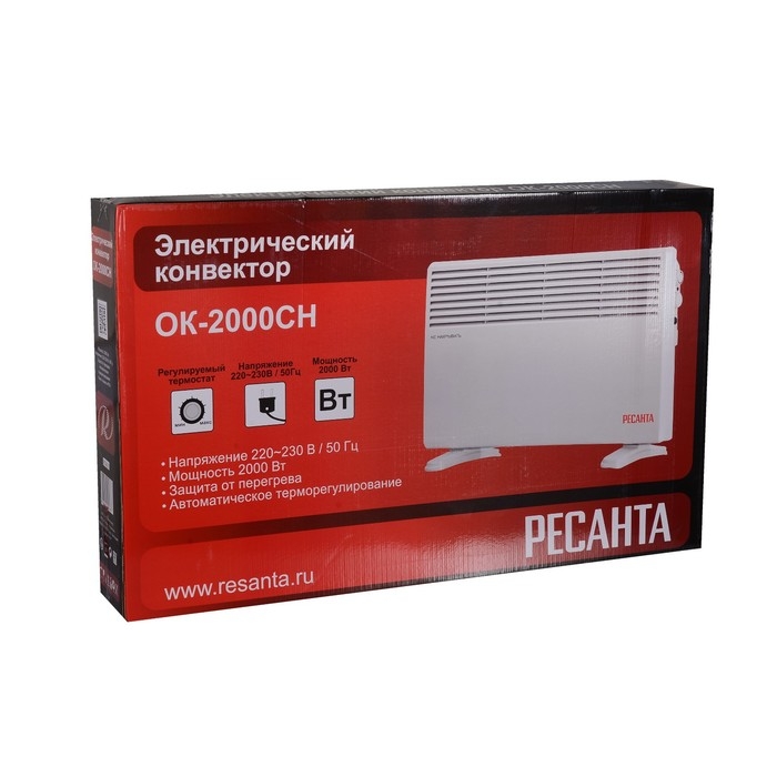 Обогреватель "Ресанта" – отопительный прибор, в котором тепло от нагревательного элемента передается в отапливаемое помещение в процессе естественной конвекции. Холодный воздух, находящийся в нижней части комнаты на уровне ног, проходит через нагревательный элемент конвектора. Увеличиваясь в объёме в момент нагрева, теплый поток устремляется вверх через жалюзи выходной решетки и плавно распространяется по комнате. При этом направление потока, заданное наклоном жалюзи, создает благоприятную ускоренную циркуляцию теплого воздуха внутри помещения, не рассредоточивая его на стены и окна.