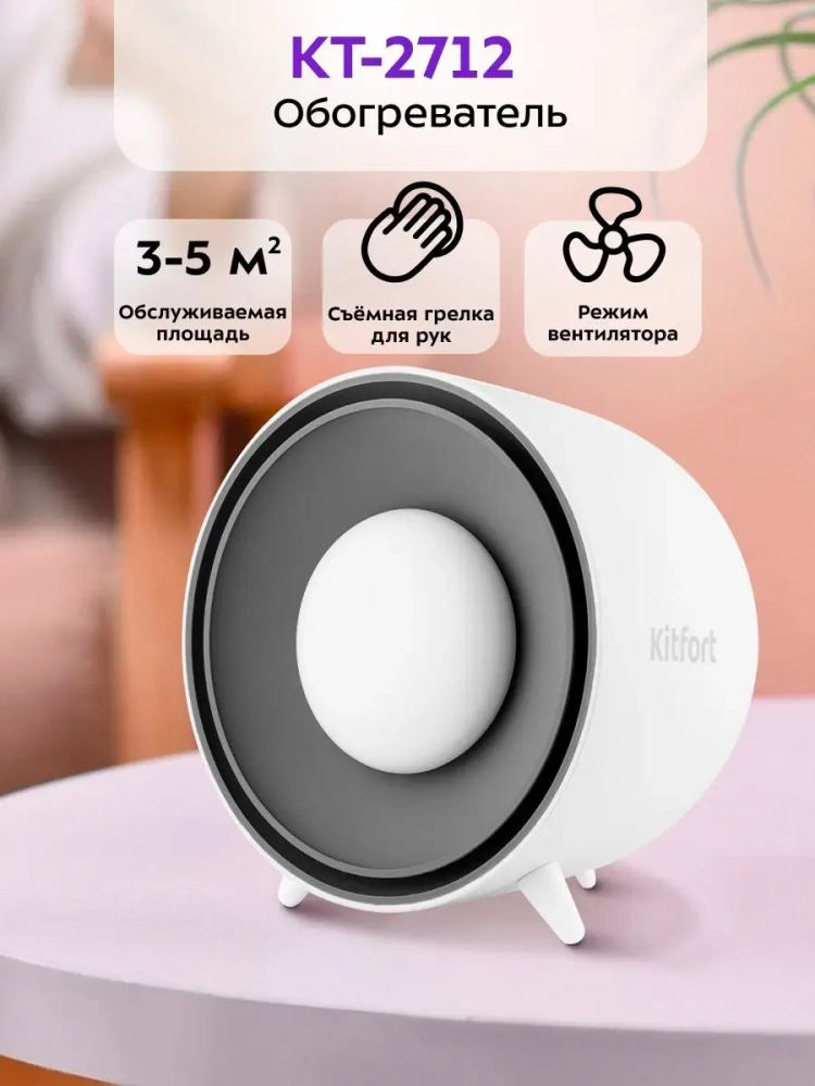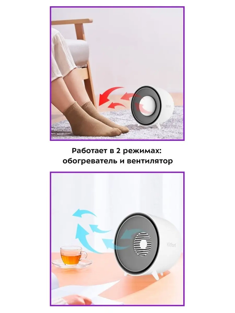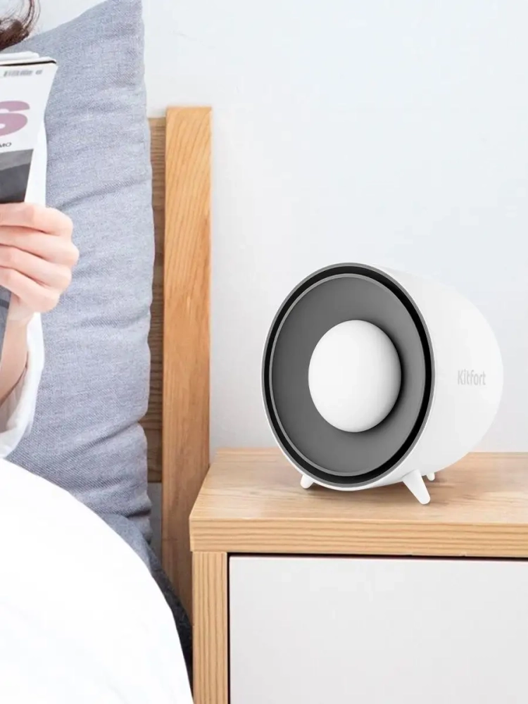 Обогреватель Китфорт КТ-2712 предназначен для обогрева воздуха рядом с вами. Прибор подойдёт, чтобы согреть руки или установить на стол и направить на себя. Вы также можете установить обогреватель на пол и направить поток тёплого воздуха на ноги.