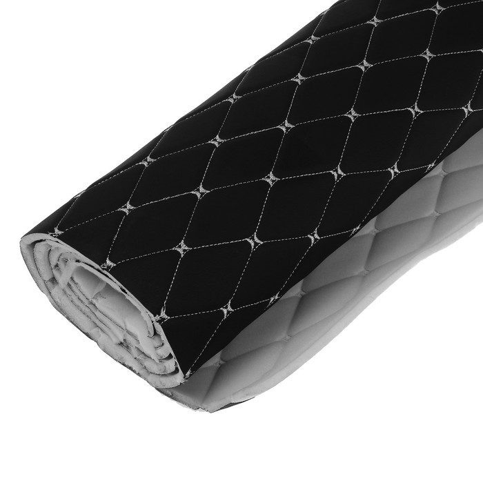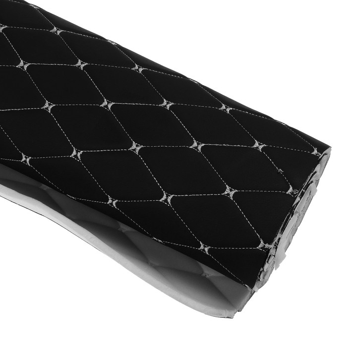 Обшивка салона авто 100×160×0,7 см, кожзам/поролон, ромб, белая строчка
