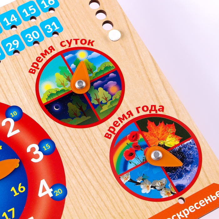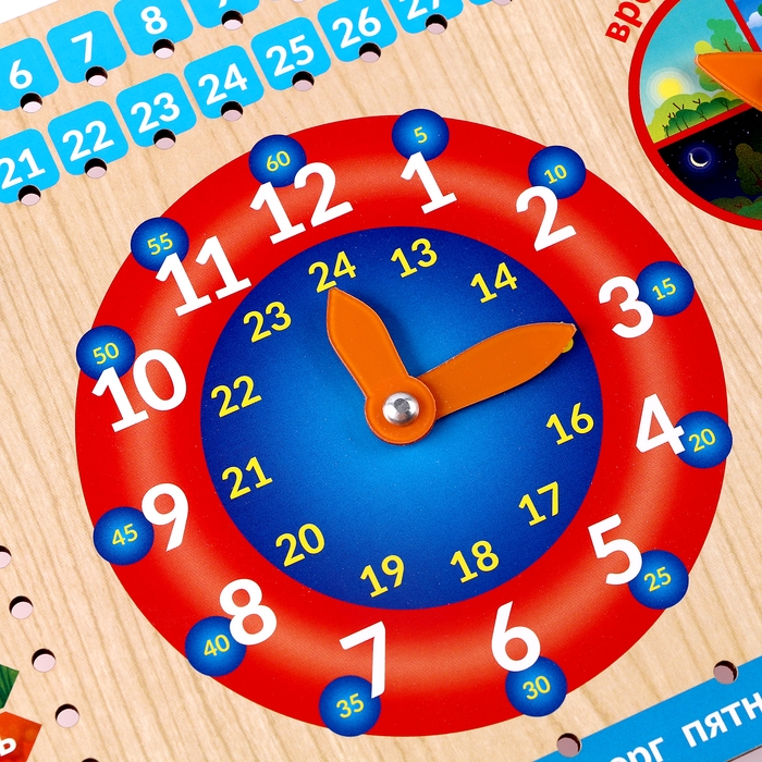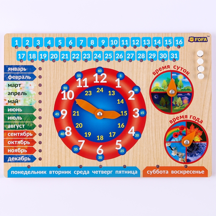 Календарь обучающий "Яркие часы", из дерева