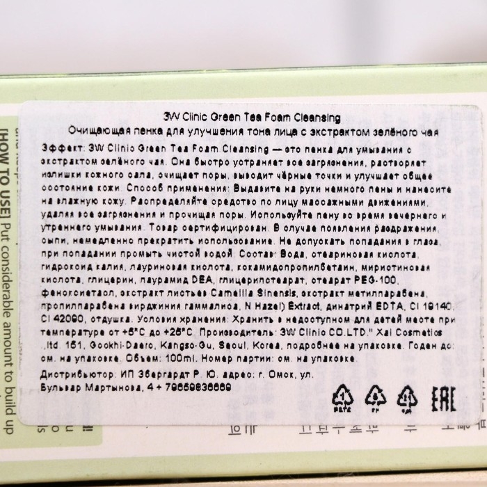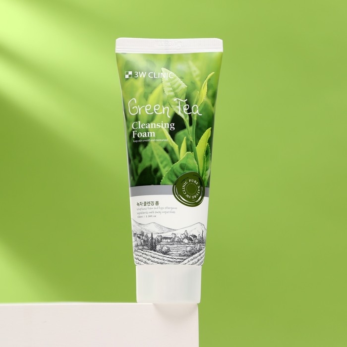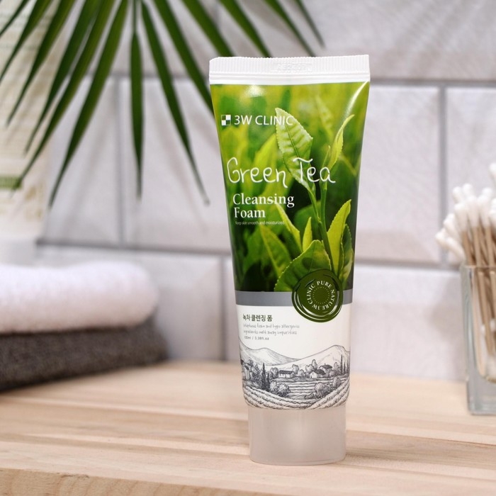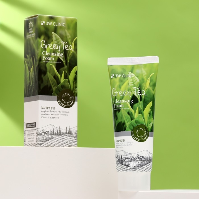 Очищающая пенка для умывания 3W CLINIC, зелёный чай, 100 мл