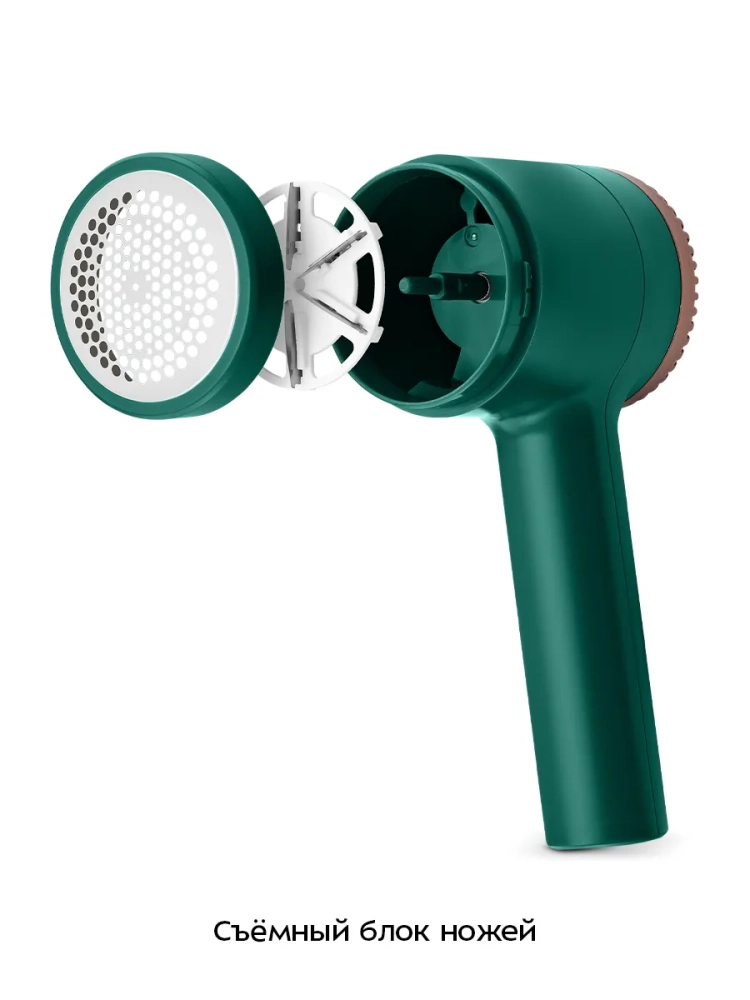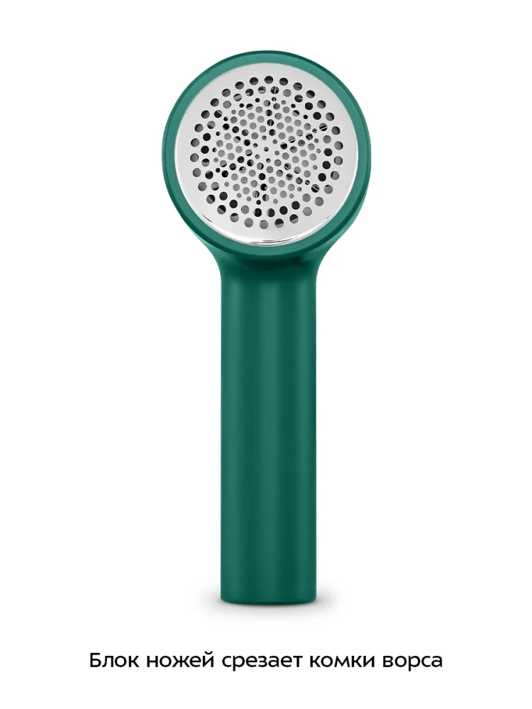 Очиститель катышков работает от аккумулятора, поэтому его можно брать с собой в путешествия или на работу. Прибор легкий, эргономичная ручка удобно лежит в руке.
