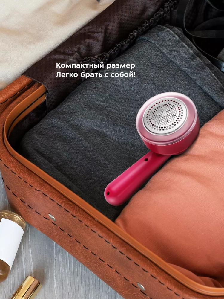 Очиститель катышков работает от аккумулятора, поэтому его можно брать с собой в путешествия или на работу. Прибор легкий, эргономичная ручка удобно лежит в руке. Заряжается устройство быстро, а также его можно включить во время зарядки.