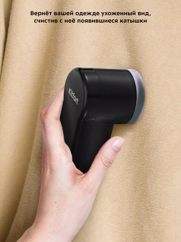 Очиститель катышков Kitfort KT-6232 вернет вашей одежде ухоженный вид, счистив с нее появившиеся катышки. Катышки появляются на одежде из-за неправильного ухода, частой и неправильной стирки, износа или из-за примеси полиэстера в тканях одежды. Принцип работы схож с электробритвой — защищенный металлической сеткой блок ножей срезает комки ворса с поверхности ткани. Съемный блок ножей сделан из нержавеющей стали. Комки ворса попадают в контейнер, который нужно очищать после каждого использования. В комплекте идет щеточка, которая предназначена для очистки ножей. Для защиты от включения без установленной защитной сетки предусмотрен специальный переключатель. Благодаря этому включить устройство можно только, если защитная сетка установлена. Очиститель катышков работает от 2 батареек типа АА, также он легкий и компактный, поэтому его можно брать с собой в путешествия или на работу. Прибор можно использовать для любых тканей из хлопка, шерсти или льна. Скорость вращения ножей: на первой скорости: 6000 об/мин; на второй скорости: 7000 об/мин. Емкость отсека для сбора катышков: 80 мл