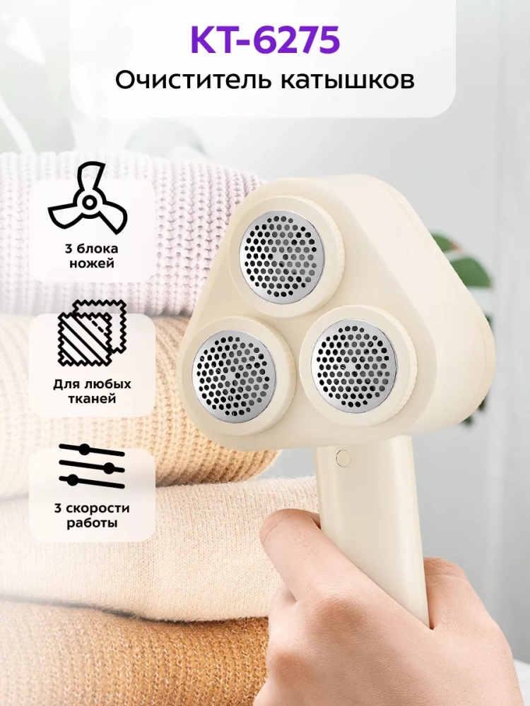 Очиститель катышков Kitfort KT-6275 вернет вашей одежде ухоженный вид, счистив с нее появившиеся катышки. Катышки появляются на одежде из-за неправильного ухода, частой и неправильной стирки, износа или из-за примеси полиэстера в тканях.