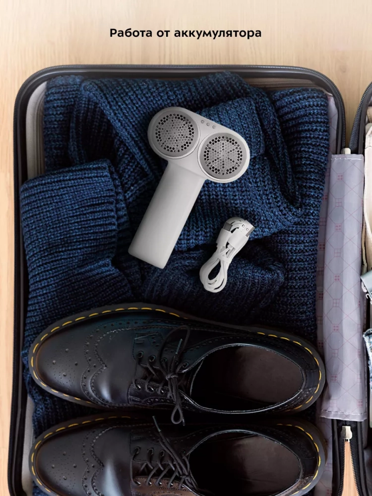Прибор работает от аккумулятора, поэтому его можно брать с собой в путешествие или на работу. Очиститель катышков небольшой и легкий по весу. Компактные размеры избавляют от проблемы хранения устройства. Заряжается прибор быстро, а также его можно включать, когда он подключен к зарядке.