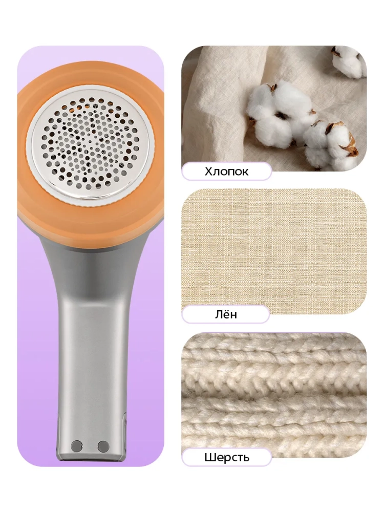 Принцип работы схож с электробритвой — защищенный металлической сеткой блок ножей срезает комки ворса с поверхности ткани. Съемный блок ножей сделан из нержавеющей стали. Комки ворса попадают в отсек, который нужно очищать после каждого использования. В комплекте идет щеточка, которая предназначена для очистки ножей.
