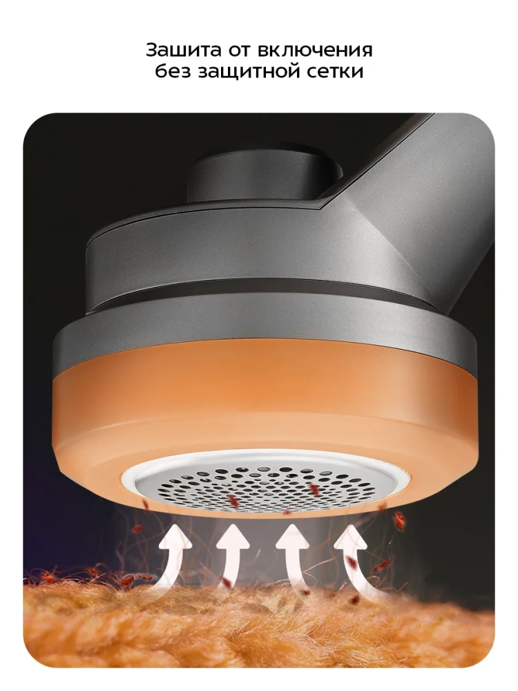 Для защиты от включения без установленной крышки предусмотрен специальный переключатель. Благодаря этому включить устройство можно только, если крышка установлена. Обязательно устанавливайте перед крышкой защитную сетку. У очистителя катышков есть блокировка для защиты от случайного включения во время транспортировки или в путешествиях. Блокировка также защищает от включения прибора детьми.