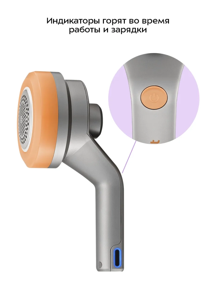 Очиститель катышков работает от аккумулятора, поэтому его можно брать с собой в путешествия или на работу. Прибор легкий, эргономичная ручка удобно лежит в руке. Заряжается устройство быстро.
