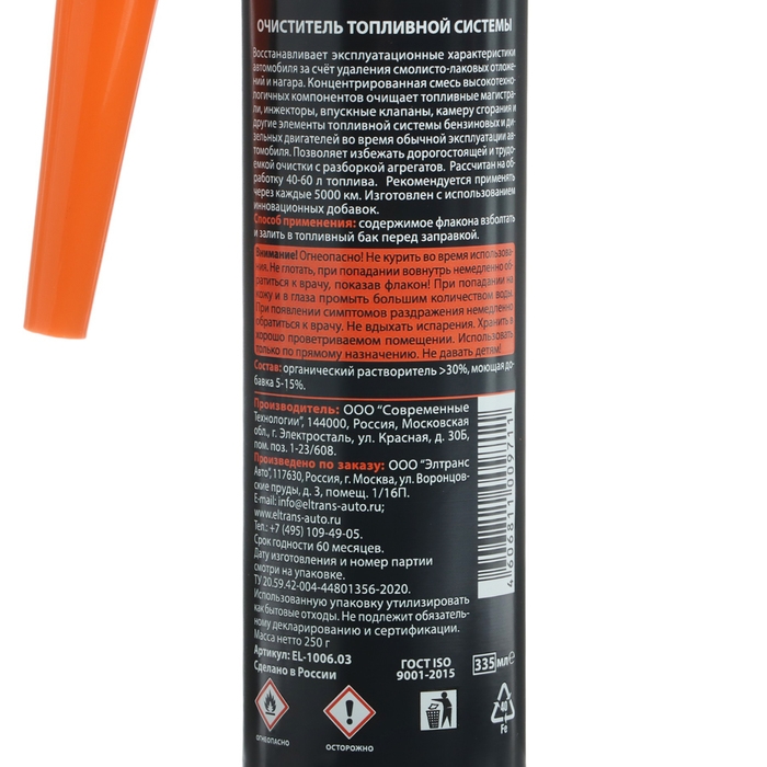Очиститель топливной ситемы Элтранс, на 40-60 л, 335 мл