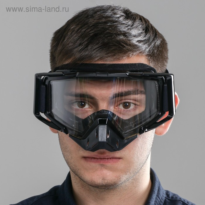 Очки-маска, со съемной защитой носа, стекло прозрачное, черные