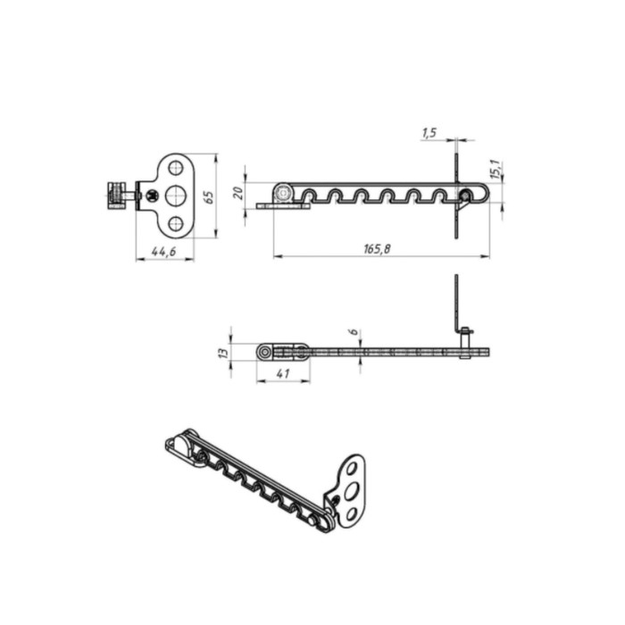 Ограничитель открывания окна ТУНДРА, пластиковый, L=165 мм, белый, 1 шт.