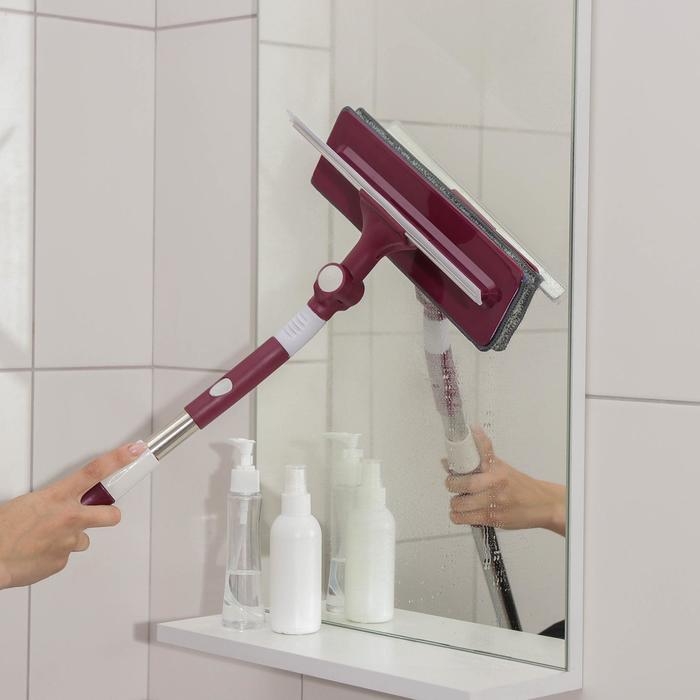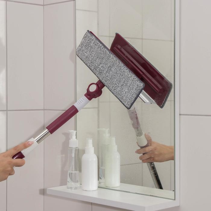 Окномойка с насадкой из микрофибры Доляна, фиксатор, стальная телескопическая ручка, 27×8×86(126) см, цвет МИКС