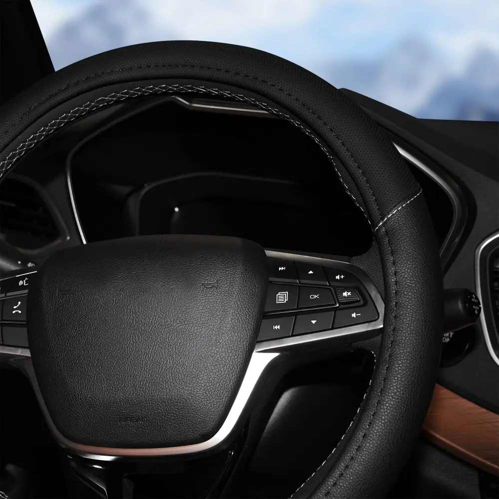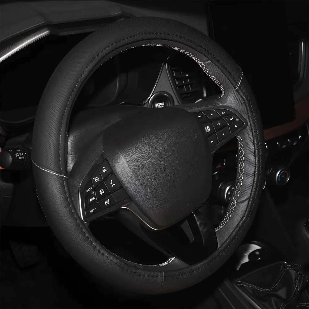 Оплетка на руль, искусственная кожа с перфорацией, черная, 36 см / S