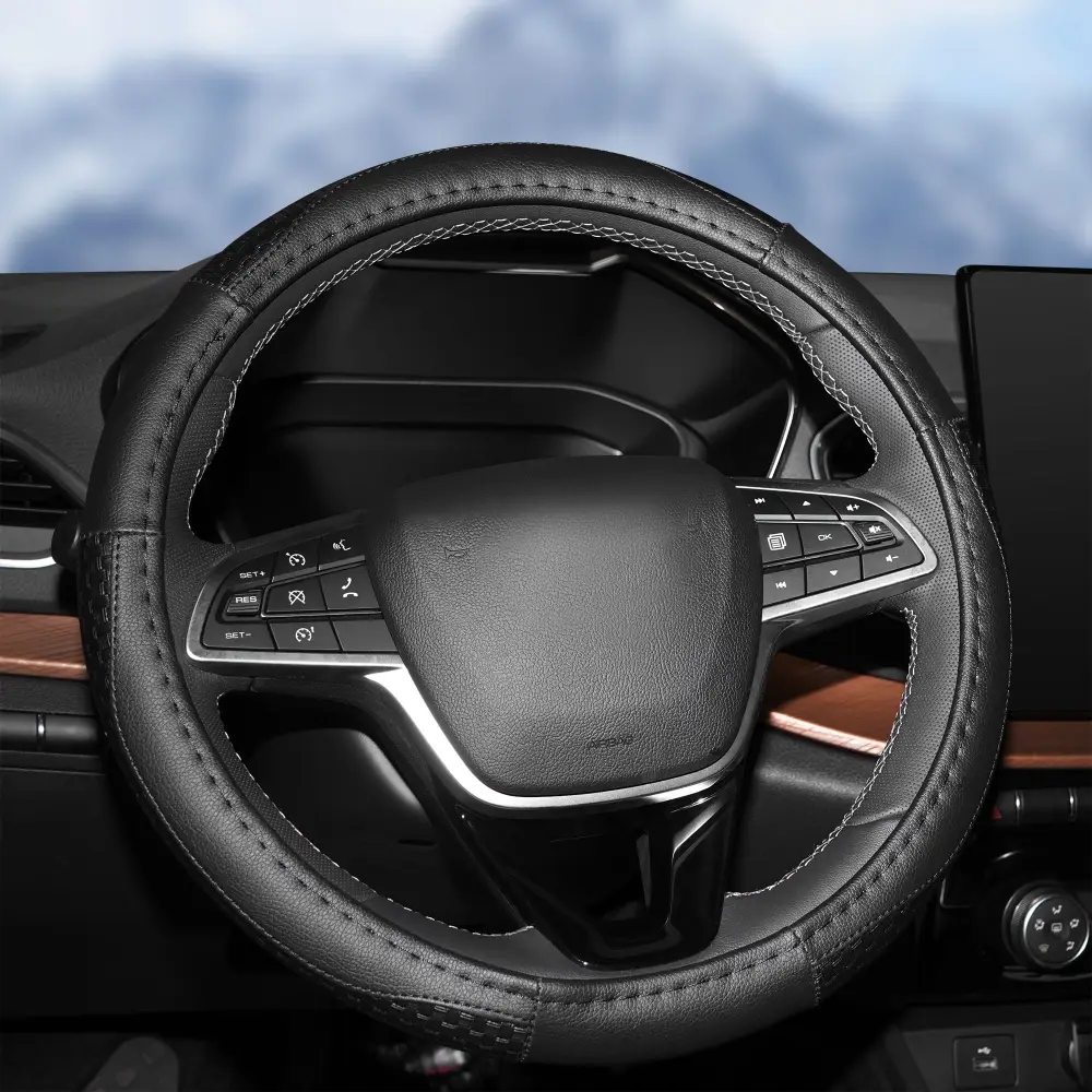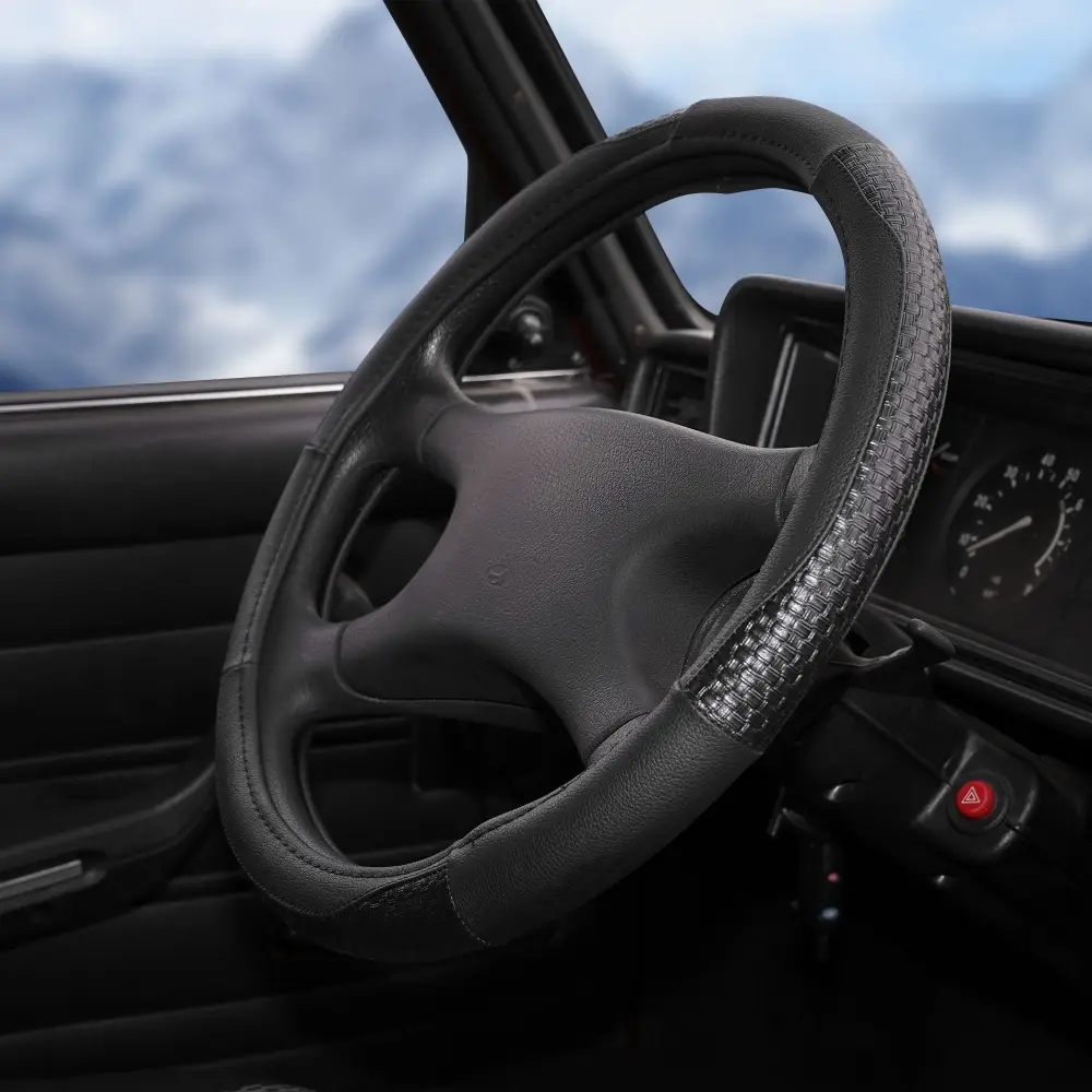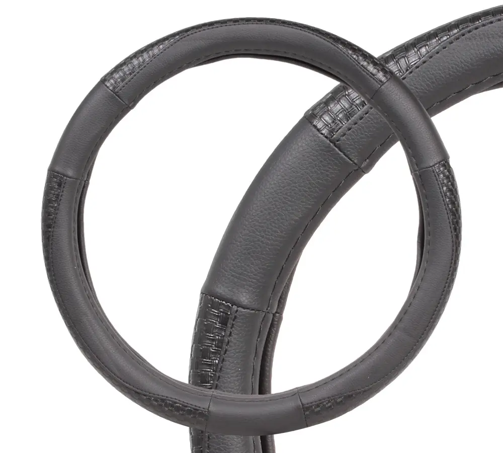 Оплетка на руль, искусственная кожа с тиснением, черная, 42 см / XL