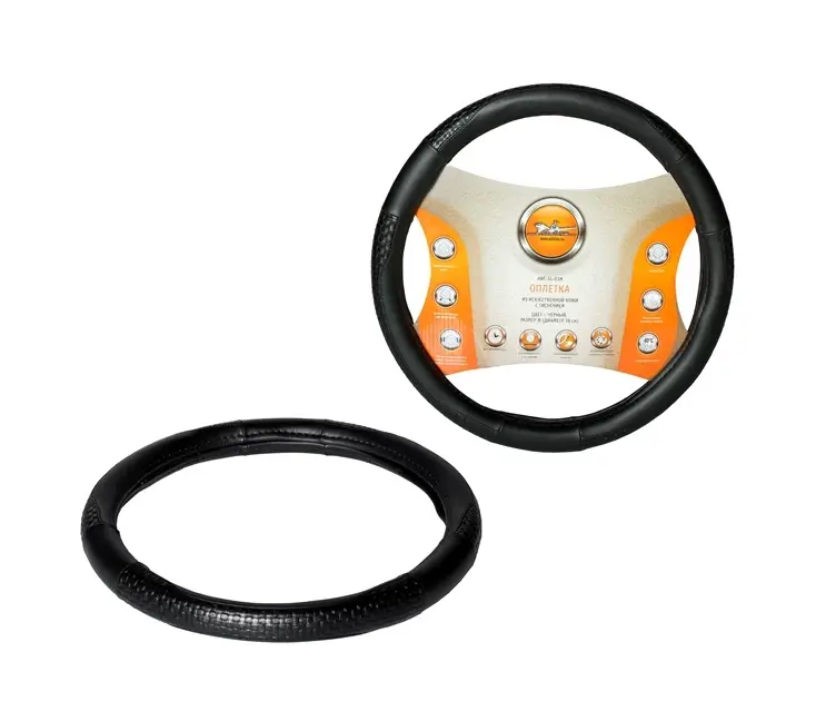 Оплетка на руль – это изделие, которое не только способно сохранить первоначальный вид автомобильного руля и уберечь его от повреждений, но и придать улучшенный вид автомобильному салону. Оплетка изготовлена в классической черной расцветке и имеет на поверхности нанесение в виде ромбовидного тиснения. Размер оплетки составляет 42 см.