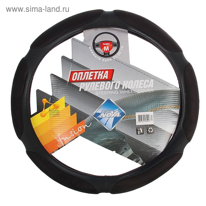 Оплетка на руль Nova Bright экокожа, спонжевая, чёрная, размер М