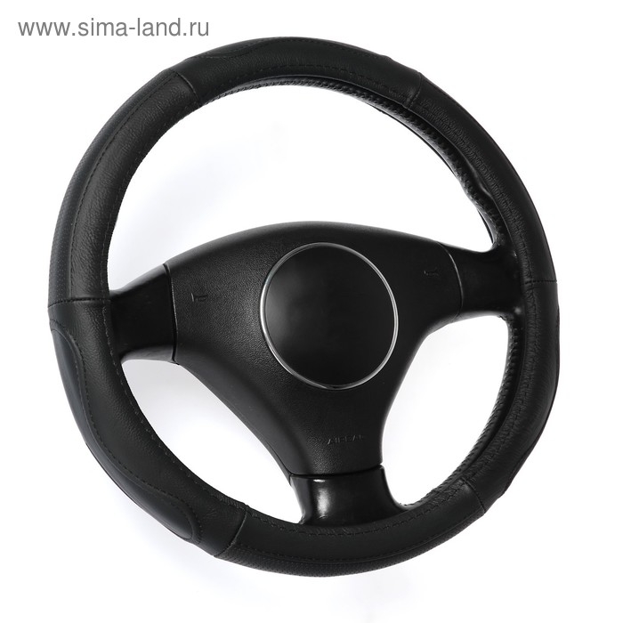 Оплетка на руль TORSO, натуральная кожа, размер 38 см, перфорированная вставка, черный