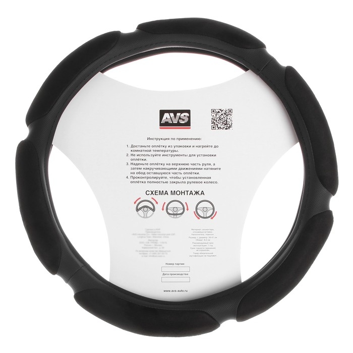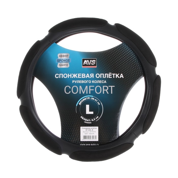Оплетка руля AVS SP-426L-B, спонжевая, размер L, черная