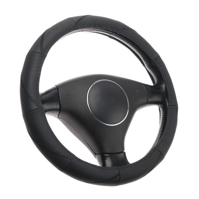Оплетка на руль Cartage, 38 см, кожа PU, антискользящая, черный
