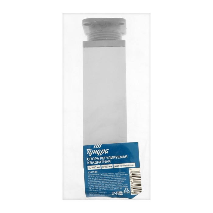 Опора регулируемая ORKV001CR ТУНДРА, квадратная, 40х40, H=120 мм, цвет матовый хром
