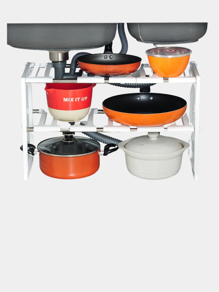Полка для хранения кухонных принадлежностей - идеальное решение для управления пространством под раковиной! Этот пластиковый органайзер регулируется от 38 до 70 см, что позволяет подстроить его под любой размер вашей раковины. Он идеально подходит для хранения сковородок, тарелок, посуды и других кухонных принадлежностей, а также может использоваться для мытья посуды или чистки фруктов. Забудьте о беспорядке в кухне - с этой полкой вы сможете поддерживать порядок и создать комфортную обстановку на своей кухне!