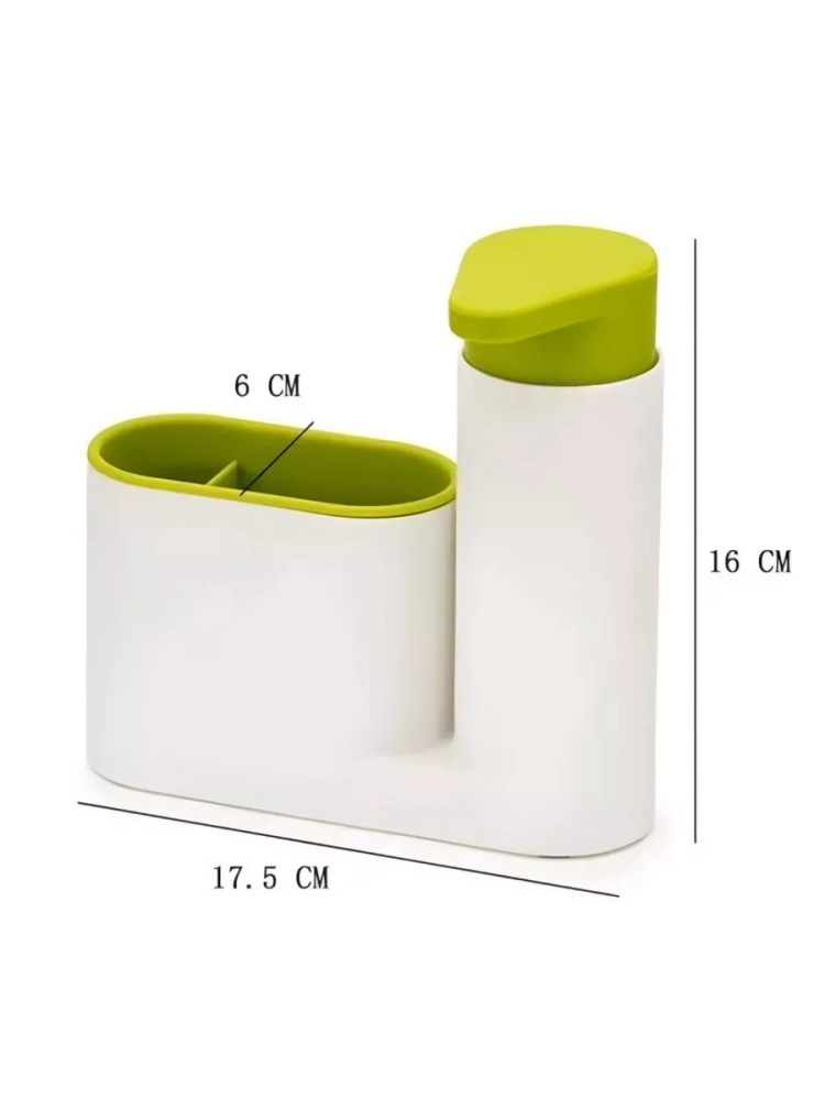 Универсальный и компактный органайзер для кухни, в ванную, около раковины, на даче. Органайзер на мойку с двумя емкостями, сушилка для столовых приборов. Состоит из совмещенных емкостей, в одной - дозатор для жидкого мыла или моющего средства, в другую можно положить губки, ершики, щетки или зубные щетки, зубную пасту и мыло. Объем дозатора - 300 мл. Компактный органайзер помещается даже на узкой стороне раковины. Разбирается для простоты чистки. Многофункциональный органайзер включает в себя 2 специальных отделения для щеток и моющих средств и отдельный дозатор для моющего средства/мыла. Теперь не придется покупать отдельные емкости ,ведь в нашем органайзере для мойки все находится под рукой и в одном месте. Благодаря кухонному органайзеру хранение вещей на кухне будет не проблемой, потому что наш органайзер для мелочей будет идеальным помощником в этом. Конструкцию не составляет труда разобрать и помыть. Универсальный и компактный органайзер 2 в 1 заменяет большие емкости с моющим средством/мылом, а для применения необходимо всего одно легкое нажатие. Благодаря своему размеру он не займет много места и его можно расположить на небольшой раковине. Два отсека можно использовать в качестве подставки для губки, чистящих принадлежностей, зубных щеток и пасты. Благодаря стильному дизайну органайзер для раковины не портит вид и дополнит любой интерьер. С ним очень быстро и удобно мыть посуду. Благодаря современному дизайну подставка-дозатор - приятный подарок близким, подруге, маме, бабушке, сестре, коллеге, на праздник, 8 марта.
