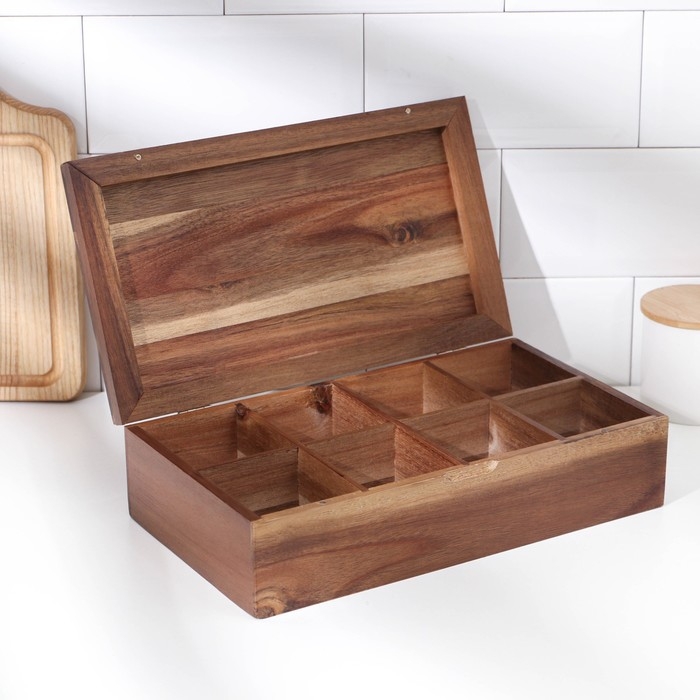 Органайзер для чая и кухонных принадлежностей, 31×17,5×8 см, 8 ячеек, тропическая акация