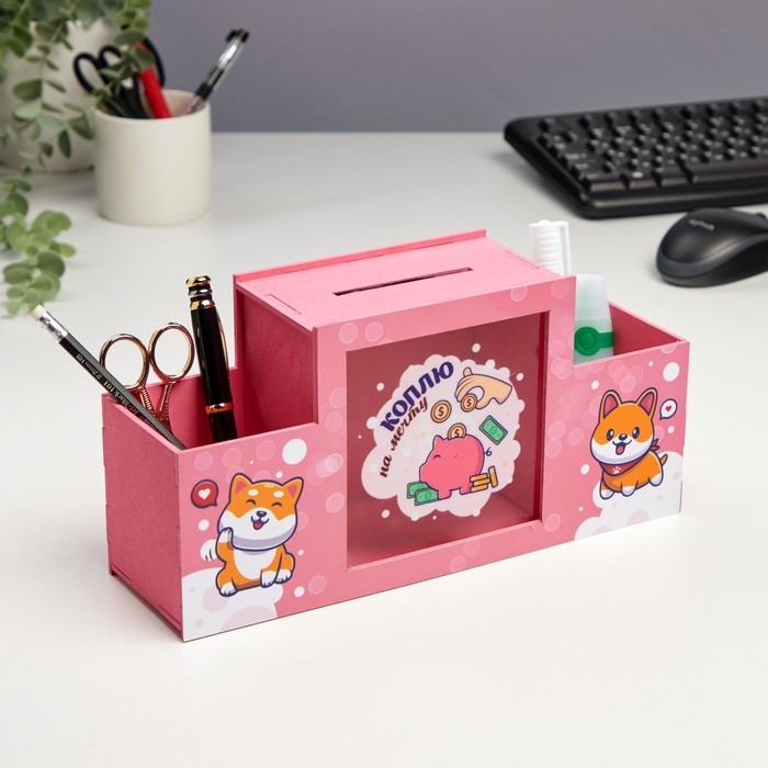 Органайзер для канцелярии с копилкой "Коплю на мечту!" 28х8,5х14 см