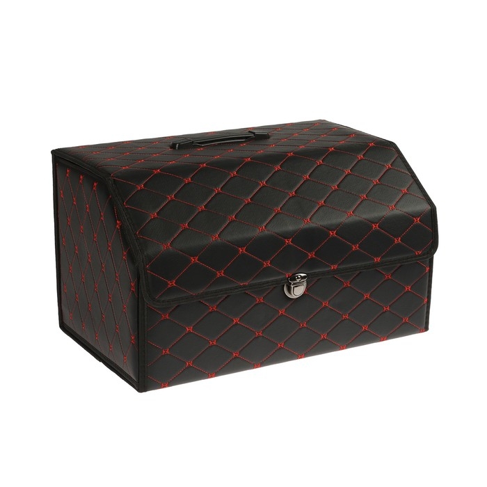 Органайзер кофр в багажник, 55 х 30 х 31 см, экокожа, черный-красный